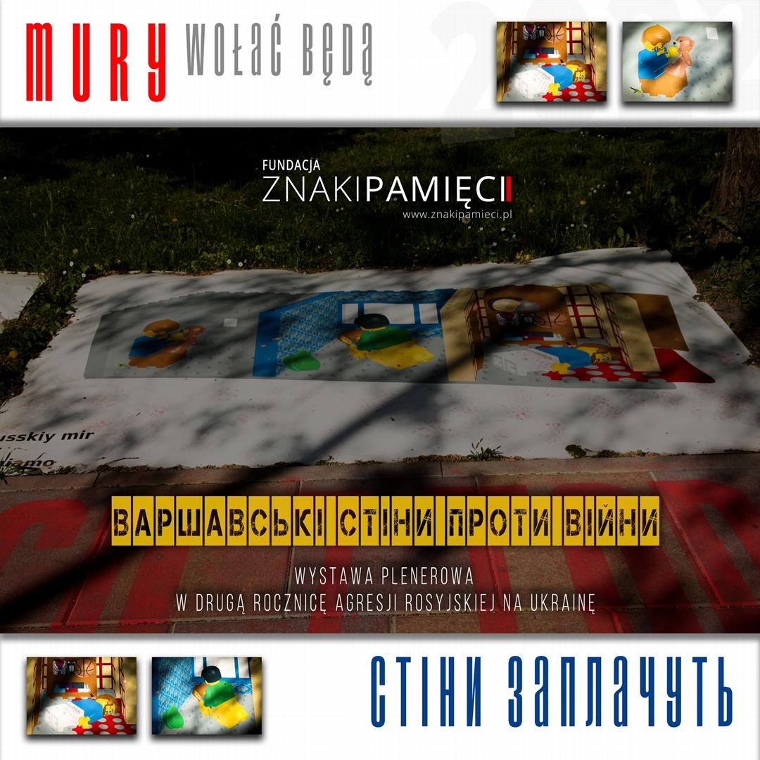 W pierwszą rocznicę rosyjskiej inwazji na Ukrainę Fundacja Znaki Pamięci uruchomiła wieloletni i składający się z wielu elementów projekt "Na straży pamięci", którego ważnym elementem jest działalność dokumentalistyczna mająca na celu przygotowanie i opracowanie "na bieżąco" przebiegu dotychczasowych i przyszłych działań wojennych prowadzonych przez Federację Rosyjską na terenie Ukrainy, a także platformę wsparcia dla osób poszkodowanych przez te działania, zarówno na terenie Ukrainy, jak i przebywających obecnie w Polsce, w tym tych przebywających w Warszawie. Jednym z ważniejszych elementów naszego projektu są działania ekspozycyjne, prezentujące i popularyzujące zgromadzony i nadal gromadzony przez nas materiał dokumentalny oraz reporterski, dotyczący opisywanych wydarzeń. W roku 2023 przygotowaliśmy obszerną, plenerową wystawę fotograficzną ukazującą reakcję warszawiaków, a przede wszystkim warszawskich ulic, ścian i murów na wydarzenia dziejące się za naszą wschodnią granicą w lutym, marcu i kwietniu ubiegłego roku. Jest to nie tylko wyraz naszej solidarności z krzywdzoną przez najeźdźcę ludnością Ukrainy, nie tylko gest wsparcia i pocieszenia w stosunku do Ukraińców, którym Warszawa zaoferowała bezpieczny i spokojny dom, ale również będzie (taką mamy nadzieję) formą utrwalenia i ukazania publiczności wydarzeń historycznych, które przetoczyły się w lutym i kolejnych miesiącach ubiegłego roku również przez nasze miasto.
