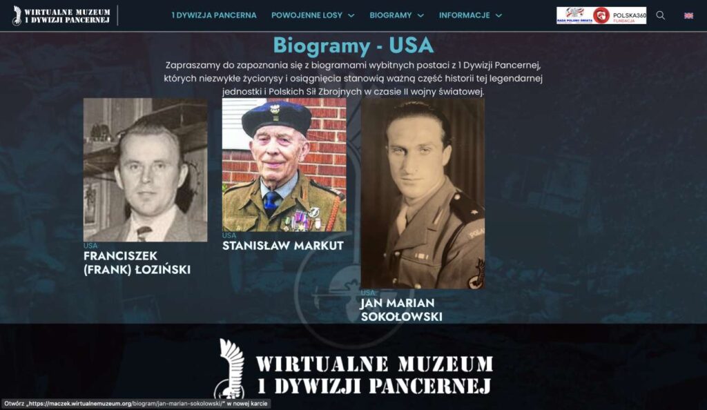 Podobnie jak w przypadku „Wirtualnego Muzeum 2 Korpusu”, naszym priorytetem jest stworzenie zbiorczego opracowania, które połączy historie żołnierzy 1 Dywizji Pancernej gen. Maczka. Odbiorcy polsko- i angielskojęzyczni będą mieli okazję zgłębić tę fascynującą historię, która dotąd nie doczekała się kompleksowego opracowania.
