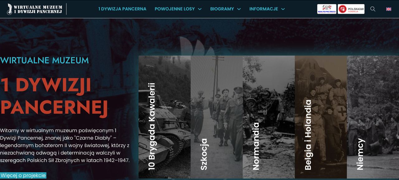 W roku 2023 przystąpiliśmy do kolejnego etapu wieloletniego projektu „Wirtualne Muzeum Polskich Sił Zbrojnych na Zachodzie”. Po udanej realizacji „Wirtualnego Muzeum 2 Korpusu”, postanowiliśmy oddać hołd kolejnej niezwykle ważnej jednostce Polskich Sił Zbrojnych na Zachodzie – 1 Dywizji Pancernej, dowodzonej przez gen. Stanisława Maczka.